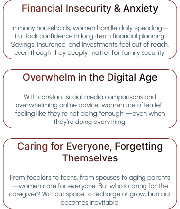 In many households, women handle daily spending—but lack confidence in long-term financial planning. Savings, insurance, and investments feel out of reach, even though they deeply matter for family security.